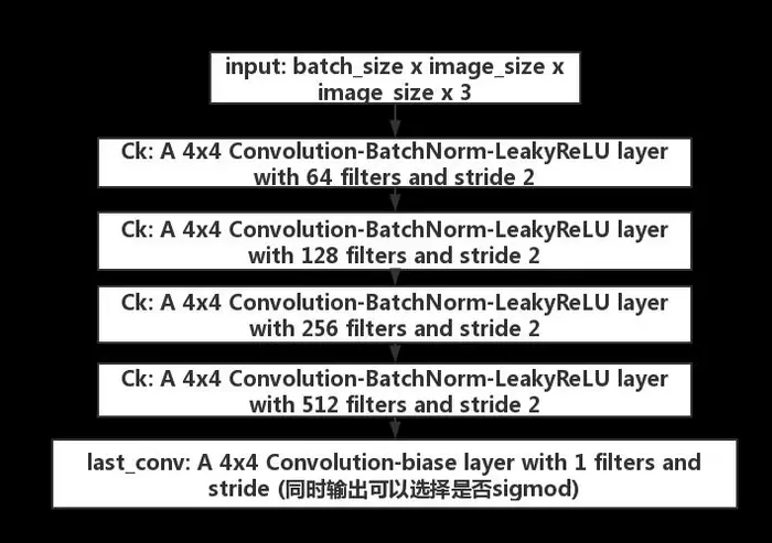 马尔可夫判别器则是不一样,直观来看,它完全由卷积层构成,最后输出的是一个 n * n 的矩阵,最后取输出矩阵的均值作为True/False的输出。