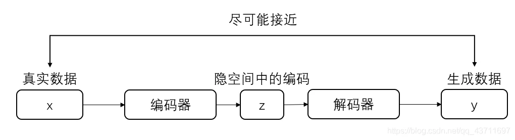 自编码器(AE):AE主要由编码器和解码器组成,整个模型其实就相当于一个压缩解压的一个过程,编码器将真实数据进行压缩到低维隐空间中的隐向量,然后解码器将压缩的隐向量进行解压得到生成数据,当然在训练过程中会将生成数据和真实数据进行比较并更新参数。其实个人感觉其目的就是使得生成数据和输入的真实数据尽量相近,尽可能抓住真实数据的核心关键,如下图所示为AE的基本框架: