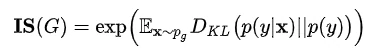 IS评价指标:IS评价指标是指Inception Score即通过Inception网络所计算生成图像分数的方法,公式如下: