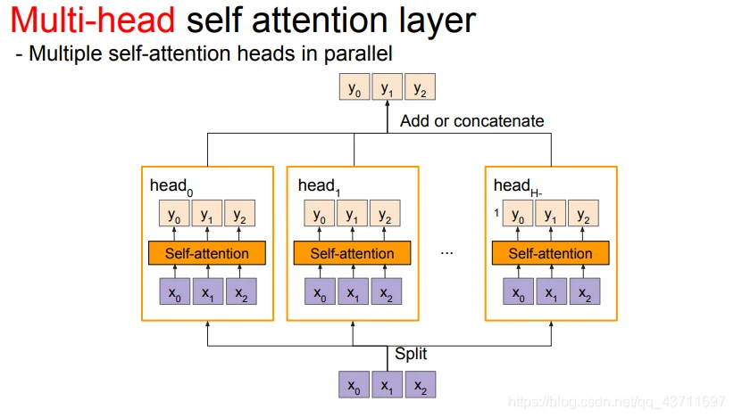 Multi-head自注意力机制:multi-head注意力机制借助尺度化的点积注意力机制进行并行化多次计算。每个独立的注意力输出通过简单拼接并线性的转换到指定的维度空间。