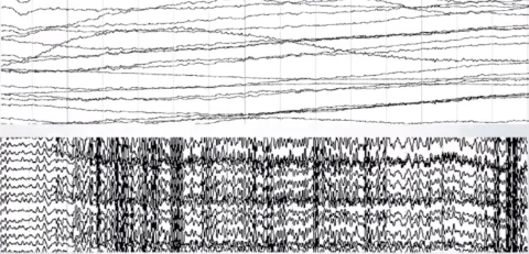 一般做睡眠脑电时,容易产生心电伪迹。解决办法:寻找舒适的体位。注意不要将参考电极放在血管上面,将比长的线用胶带粘到帽子上。