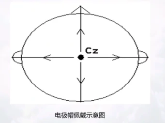 在实验中有一个简单的方法来判断受试者头部的Cz点:双耳耳珠的连线与鼻根到枕骨隆突的连线的交叉点就是Cz点。