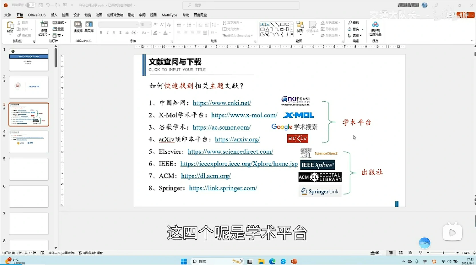 - 00:50 八个网站可用于查找学术文献