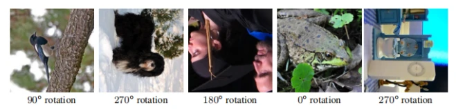 该论文采用图片旋转作为几何变换,具体表现为0、90、180和270度的旋转变化,如图1所示。
