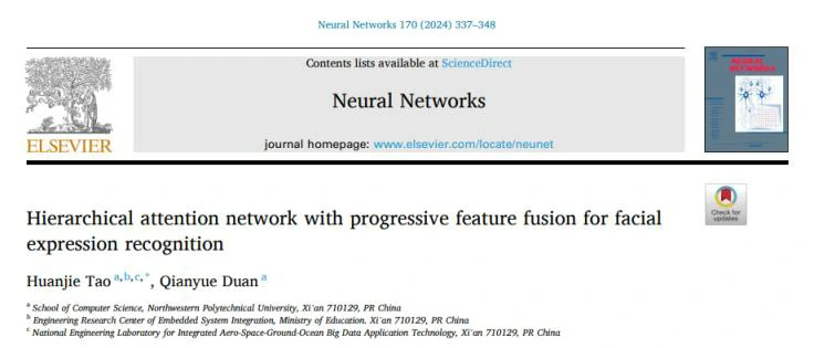 该论文发表于Neural Networks(中科院一区,IF=9.657),题目为《Hierarchical attention network with progressive feature fusion for facial Expression recognition》。