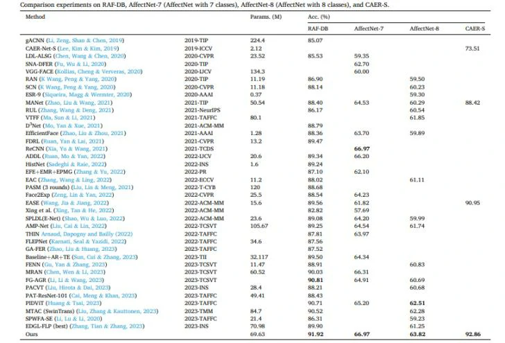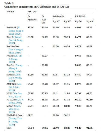 实验结果显示,该模型在处理遮挡和姿势变化等复杂情况下具有较强的鲁棒性,并在多项面部表情识别任务中达到了当前最优的性能。