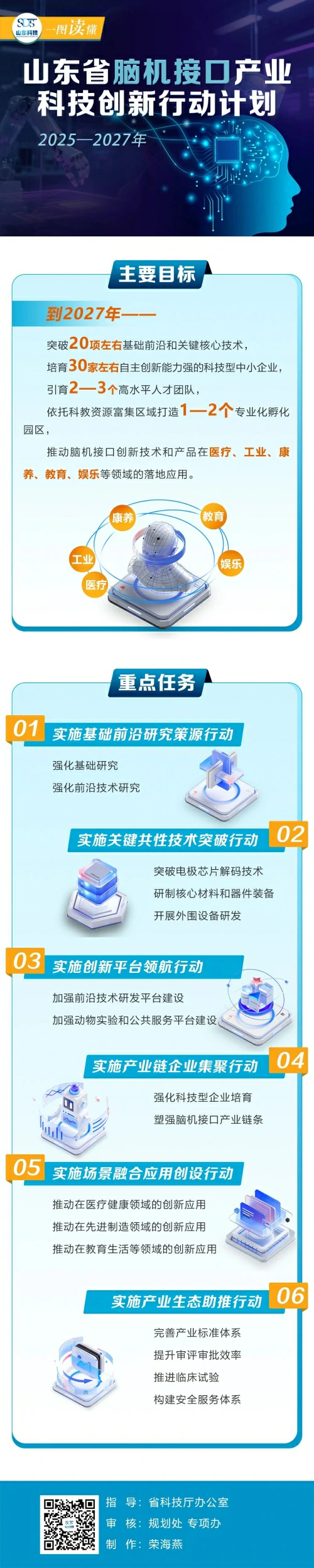 一图读懂 | 《山东省脑机接口产业科技创新行动计划(2025—2027年)》 发表于 2025-05-20 分类于 🌙进阶学习 , ⭐脑机接口与混合智能研究团队(BCI团队) , 💫政策 阅读次数: Valine: 本文字数: 69 阅读时长 ≈ 1 分钟 原文链接http://kjt.shandong.gov.cn/art/2025/5/20/art_103586_10319379.html