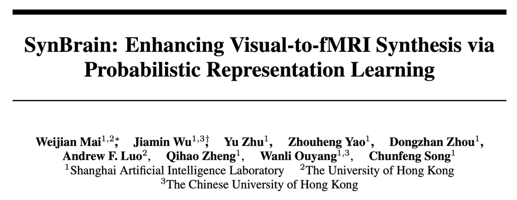 本研究由上海人工智能实验室、香港大学、香港中文大学等机构的科研人员联合完成,发表于NeurIPS 2025《SynBrain: Enhancing Visual-to-fMRI Synthesis via Probabilistic Representation Learning》。论文第一作者为麦伟健(Weijian Mai),现为香港大学一年级博士生,师从香港大学助理教授罗逸飞(Andrew F. Luo)。该工作完成于其在上海人工智能实验室实习期间,通讯作者为伍佳敏(Jiamin Wu)。
