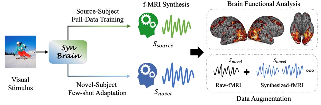 (3)跨被试迁移能力薄弱:模型适配新被试时,往往需要依赖大量的脑扫描数据进行重新训练;同时,其生成的合成信号难以作为有效数据增强源,无法满足临床等数据稀缺场景的实际应用需求。