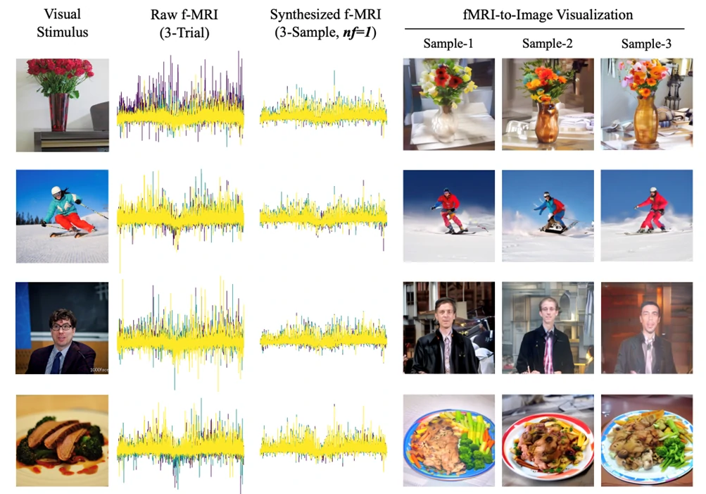 视觉刺激与大脑神经响应间的映射,是计算神经科学领域的核心难题。该映射本质上呈现显著的一对多特性—— 相同的视觉输入在不同实验试次、不同受试者身上,往往会诱发存在明显差异的脑响应,但这些响应必须始终保留编码视觉刺激信息的功能一致性。传统视觉到功能性磁共振成像(fMRI)信号的合成方法,大多依赖确定性建模策略,这类方法要么难以捕捉脑响应的固有变异性,要么无法兼顾响应信号的语义一致性;加之跨受试者适配时需依赖海量扫描数据,严重制约了其在神经解码、脑机接口等实际场景中的落地应用。