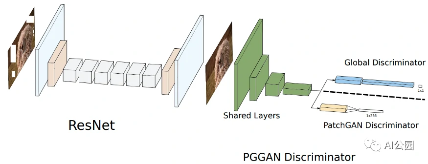 实际上,本文的大部分内容与GLCIC相似。在网络结构中嵌入了两个新的概念,即残差块和PatchGAN判别器,进一步增强了修复结果。
