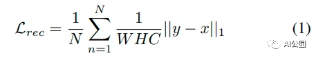 N为训练批中的图像数量。W、H、C分别是训练图像的宽度、高度和通道。x和y分别为ground truth和模型给出的完整图像。