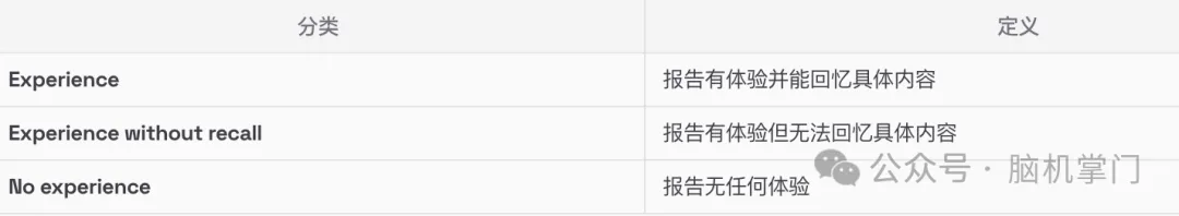 - REM 睡眠中”有体验”报告显著多于 NREM 睡眠