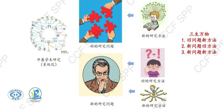 选完题之后就可以开展学术研究了,学术研究大致可以归纳为三生万物:
