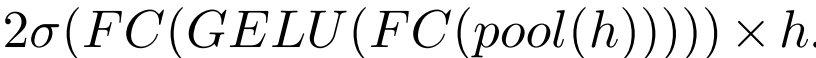 在最后一个 1×1 卷积之后是 Squeeze&Excite 层,它全局平均汇集激活,对汇集的激活应用两个具有交错缩放非线性的线性层,应用一个 sigmoid,然后以这个 sigmoid 值的两倍重新缩放张量通道。具体的,这一层的输出为: