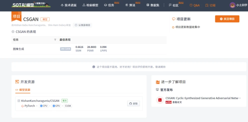 当前 SOTA!平台收录 CSGAN 共 1 个模型实现资源。