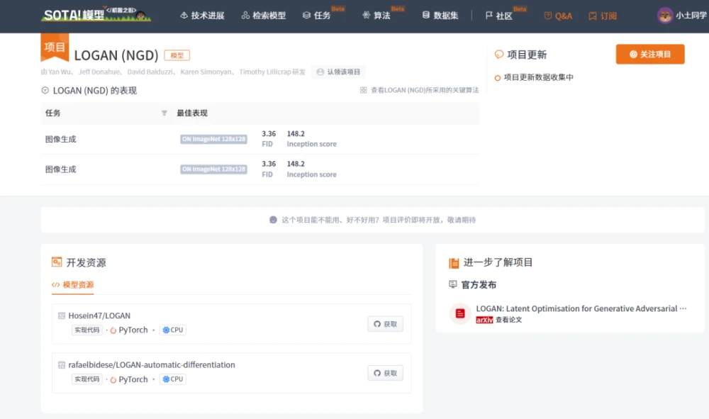 当前 SOTA!平台收录 LOGAN 共 2 个模型实现资源。