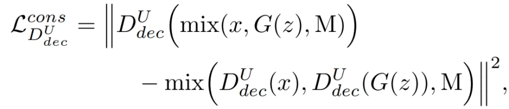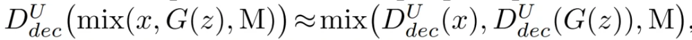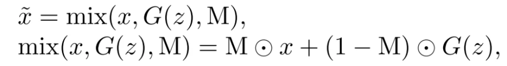 具体的,通过将x和G(z)∈RW×H×C与掩码M混合,为鉴别器D^U合成一个新的训练样本x˜