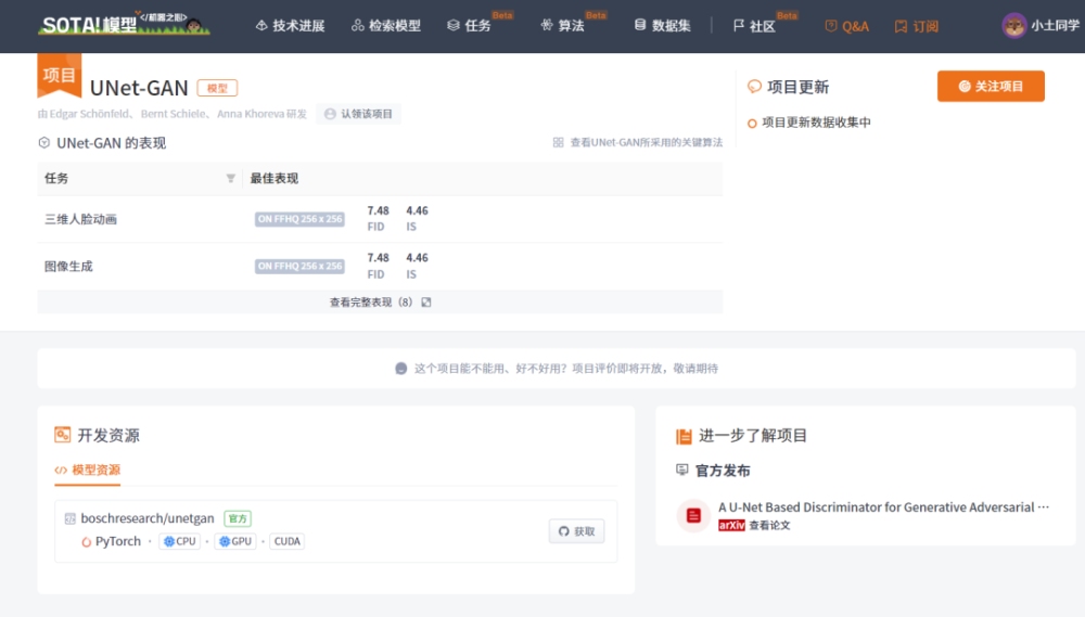 当前 SOTA!平台收录UNet-GAN共 1 个模型实现资源。
