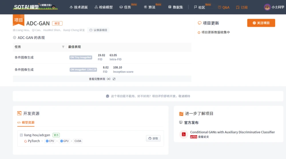 当前 SOTA!平台收录 ADC-GAN 共 1个模型实现资源。