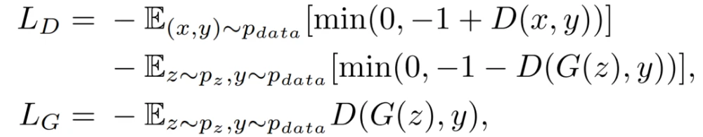 其中,γ是一个可学习的标量,初始化为0。γ允许网络首先依赖局部附近的线索,然后逐渐学会为非局部线索分配更大的权重。在SAGAN中,将自适应注意力模块同时应用于生成器和鉴别器,通过最小化 hinge version of the adversarial loss 以交替的方式进行训练。