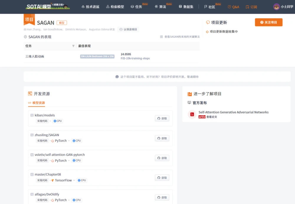 当前 SOTA!平台收录SAGAN共 43 个模型实现资源。
