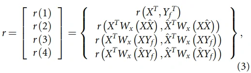 为确定SSVEPs的频率,作者采用正则相关分析(CCA)方法计算多通道EEG信号和参考信号在每个刺激频率下的典范相关性,然后选择参考信号中相关性最大的频率作为SSVEPs的频率。在本研究中,CCA分类器被用来建立一个相关向量ρ,其定义如(3)其中r(a, b)表示a和b之间的相关系数。为了结合这些相关值,作者使用权重相关系数˜r作为目标识别的最终特征值:公式(4)。其中sign()用于保留测试集和训练参考信号之间负相关系数的判别信息。