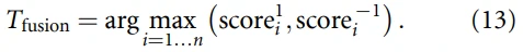 作者使用了一个基于P300和SSVEP分数水平的融合方法。在贝叶斯模型更新了P300和SSVEP检测的答案概率后,将P300概率和SSVEP概率串联,建立一个融合特征向量X=(x1,x2,…,xn),其中xn是第n次试验的向量:公式(10)。带有目标标签Y ={y1, y2, …, yn}的特征向量被输入分类器: 公式(11)。其中LSVM被用作分类器。试验的目标可以通过解决以下问题来预测:f(x) = w - x + b。其中w是权重向量。用离线数据训练SVM模型后,特征向量被输入到SVM模型中。再通过最大化SVM的决策值来预测目标的标签:公式(13)。