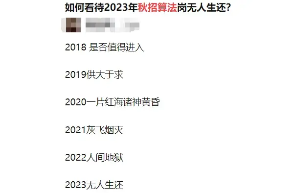 每次刷知乎,总能看到“19年算法岗供大于求”、“20年算法岗诸神黄昏”、“21年算法岗灰飞烟灭”,今年又换了个四字词语 –“人间炼狱”。各路“过来人”也都是全方位劝退。