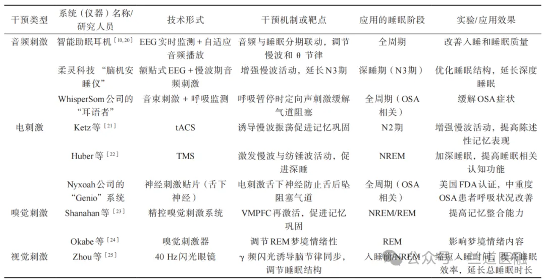 注:BCI为脑机接口;EEG为脑电信号;OSA为阻塞性睡眠呼吸暂停;tACS为经颅交流电刺激;TMS为经颅磁刺激;NREM为非快速眼动睡眠(Non-rapid Eye Movement);美国 FDA为美国食品药品监督管理局;VMPFC为腹侧前额叶皮质;REM为快速眼动睡眠。
