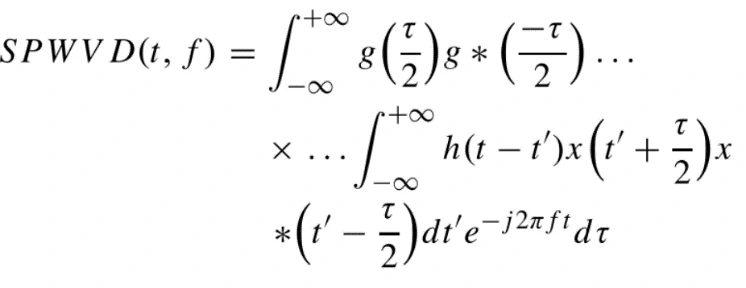 其中频域和时域的Windows缩减交叉项分别用g(t)和h(t)表示。SPWVD允许自由选择g(t)和h(t)的长度。