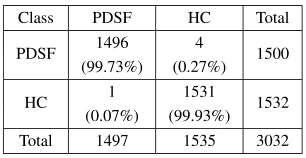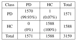 在PD自动检测实验中,PDCNNet模型的最高准确率为99.97%,灵敏度为100%,特异性为99.94,精密度为99.94%。其中两个数据集的结果如下: