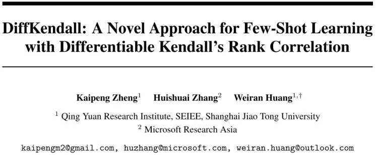 该论文发表于NIPS 2023,题目为《DiffKendall: A Novel Approach for Few-Shot Learning with Differentiable Kendall’s Rank Correlation》。
