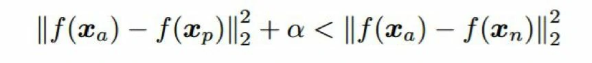 选择用于训练 CNN 方法的损失函数已经成为近来人脸识别最活跃的研究领域。即使使用 softmax 损失训练的 CNN 已经非常成功 [99,9,10,123],但也有研究者认为使用这种损失函数无法很好地泛化到训练集中未出现过的主体上。这是因为 softmax 损失有助于学习能增大类间差异的特征(以便在训练集中区别不同的类),但不一定会降低类内差异。研究者已经提出了一些能缓解这一问题的方法。优化瓶颈特征的一种简单方法是使用判别式子空间方法,比如联合贝叶斯 [48],就像 [9,124,125,126,10,127] 中所做的那样。另一种方法是使用度量学习。比如,[100,101] 中使用了配对的对比损失来作为唯一的监督信号,[124-126] 中还结合使用了分类损失。人脸识别方面最常用的度量学习方法是三元组损失函数 [128],最早在 [102] 中被用于人脸识别任务。三元组损失的目标是以一定余量分开正例对之间的距离和负例对之间的距离。从数学形式上讲,对于每个三元组 i,需要满足以下条件 [102]: