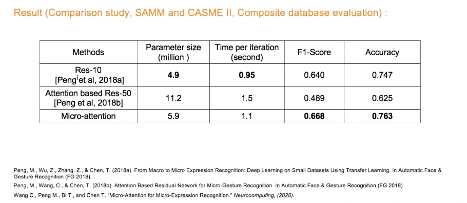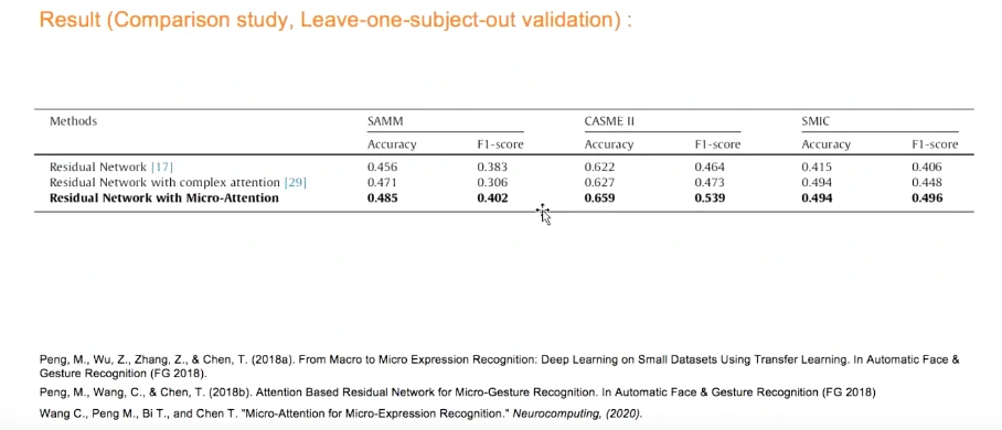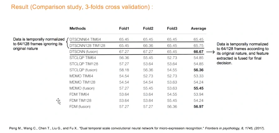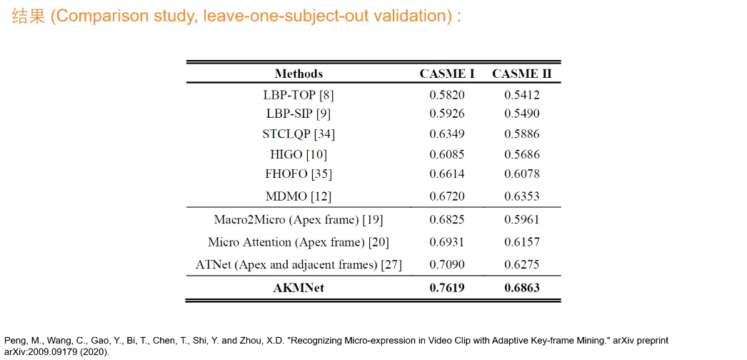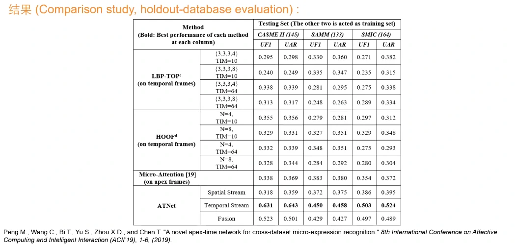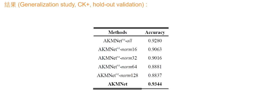 网络的设计是有一定的泛化性的,只要是输入的视频是稀疏的,想要找到特殊帧基本都有效。使用了一个宏表情的视频数据库CK+,做了一个hold-out validation,根据这个网络及其变种(输入全部帧并不筛选、进行时域插值),依然能得到很好的结果,比起同时期发表的对于CK+的paper也是很有可比性的。