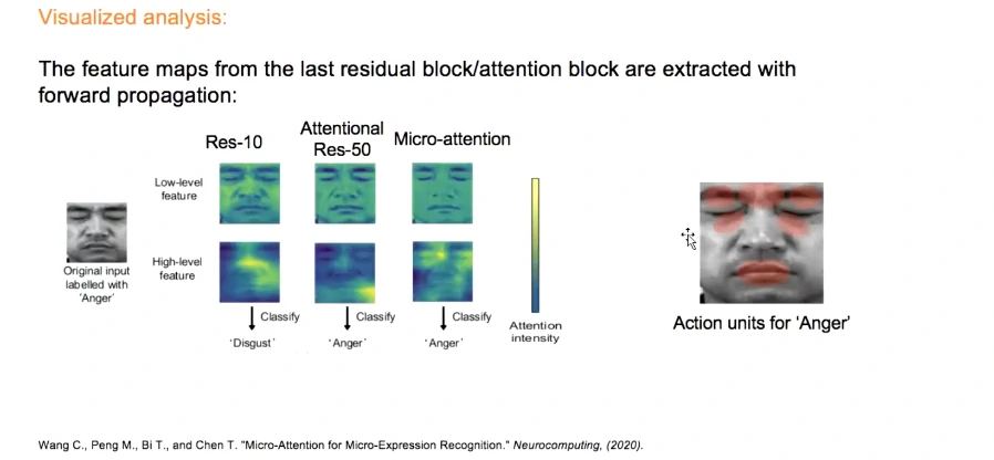 可视化分析:愤怒表情。第三列加入了注意力比较符合