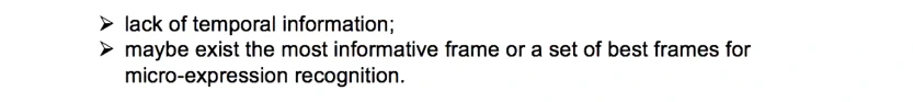 整个视频输入存在数据冗余,很多帧是没有用的,微表情持续时间短、局部运动,微弱的时空信息