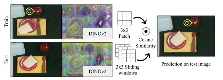 参数选择需要大量的人力,因为它需要通过 MI 进行精确的光标操作。为了减少人类的努力,我们提出了一次性技能参数学习算法,用于预测给定对象技能对作为光标控制初始点的参数。在给定训练图像中的参考点的情况下,在测试图像中找到语义对应点。特征可视化显示了所使用的 768个DINOv2 令牌中的3个。