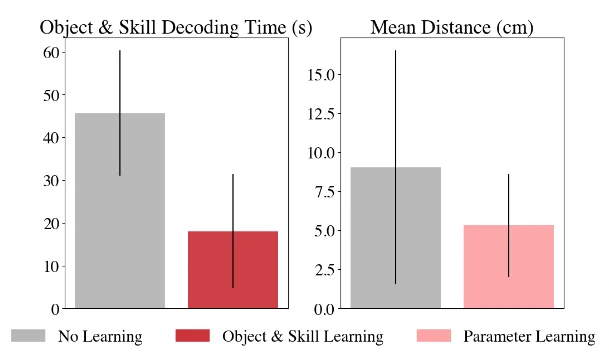 对象和技能学习,每次对象技能选择所需的平均时间从 45.7 秒减少到 18.1 秒,减少了 60%。