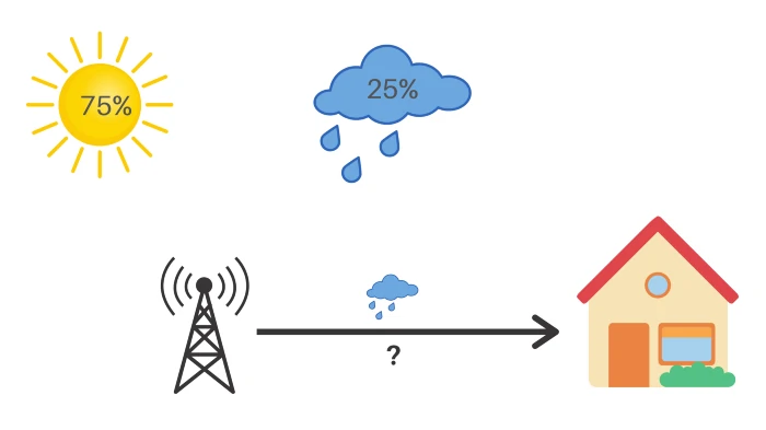 那么,当气象站为您提供第二天的天气时,它们会将您的不确定性降低了8倍。由于每个事件的发生几率为1/8,因此降低因子为8。但如果这些可能性不是等概率的呢?比如,75%的机会是晴天,25%的机会是雨天。