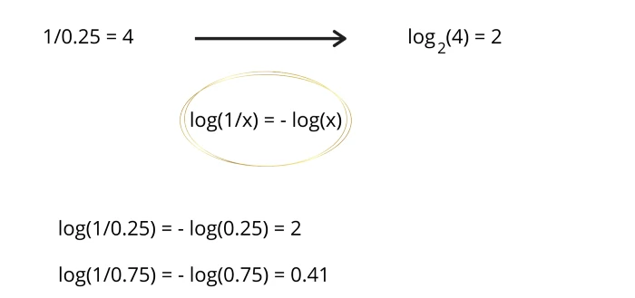 现在,如果气象台说第二天会下雨,那么你的不确定性就降低了4倍,也就是2比特的信息。不确定性的减少就是事件概率的倒数。在这种情况下,25%的倒数是4,log(4)以2为底得到2。因此,我们得到了2位有用的信息。