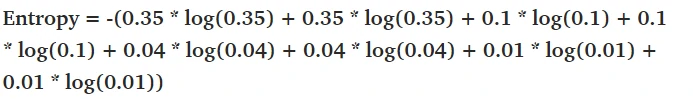我们刚刚所计算出来的就叫做熵,它可以很好地描述事件的不确定性。它是由以下公式给出: