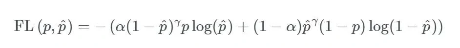 焦点损失,出自何凯明的Focal Loss for Dense Object Detection[9],出发点是解决目标检测领域中one-stage算法如YOLO系列算法准确率不高的问题。作者认为样本的类别不均衡(比如前景和背景)是导致这个问题的主要原因。比如在很多输入图片中,我们利用网格去划分小窗口,大多数的窗口是不包含目标的。如此一来,如果我们直接运用原始的交叉熵损失,那么负样本所占比例会非常大,主导梯度的优化方向,即网络会偏向于将前景预测为背景。即使我们可以使用OHEM(在线困难样本挖掘)算法来处理不均衡的问题,虽然其增加了误分类样本的权重,但也容易忽略掉易分类样本。而Focal loss则是聚焦于训练一个困难样本的稀疏集,通过直接在标准的交叉熵损失基础上做改进,引进了两个惩罚因子,来减少易分类样本的权重,使得模型在训练过程中更专注于困难样本。其基本定义如下: