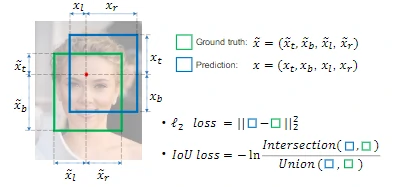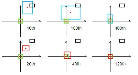 通过观察这个公式,可以直观地感受到,在权重迭代过程中,模型不断地将RP的四个顶点拉向GT的四个顶点,直到它们重叠为止,如下图所示。