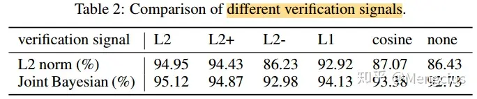 - 另外还有基于L1范数的损失函数、余弦相似度的验证信号等,后面分析,L2是最好的