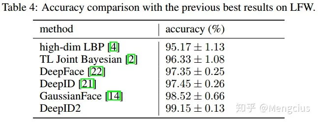 - 使用L2+验证信号学习的DeepID2特性只比使用L2学习的稍差。但L2-验证信号对特征学习的帮助很小,几乎与不使用验证信号的结果相同。这就证明了验证信号主要是减少类内差异。