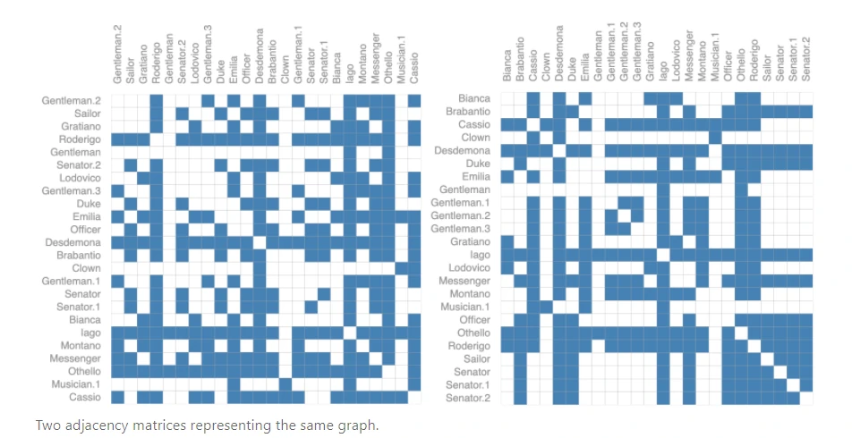 虽然两个邻接矩阵看起来不一样,但二者表示的却是同一个图。