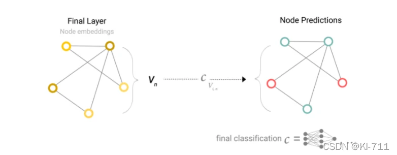 将经过最后一层后输出的节点状态向量Vn与一个全连接层相连,就能进行分类任务了。