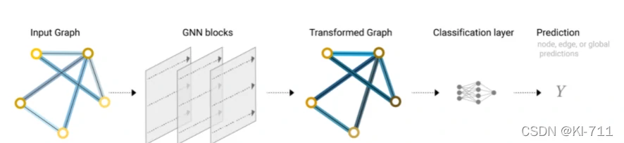 在经历了将数据转为graph以及将graph进行表示后,我们就能使用GNN来对图进行处理了。