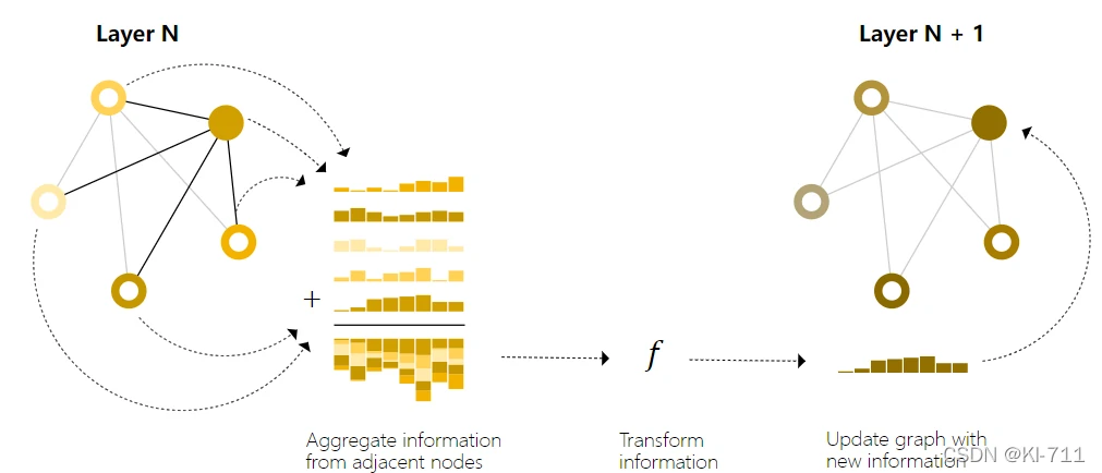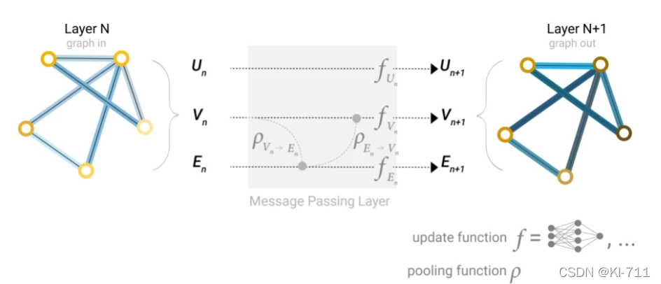简单来说就是,我们初始给定了节点或者边或者全局的属性,GNN将对这些属性进行变换,但是这种变换不会影响节点之间的连接性,变换优化后的图依旧保持着原图的连接结构。